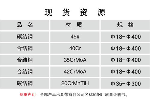 鄭重聲明:全部產品出具帶有我公司名稱的鋼廠質量說明書。